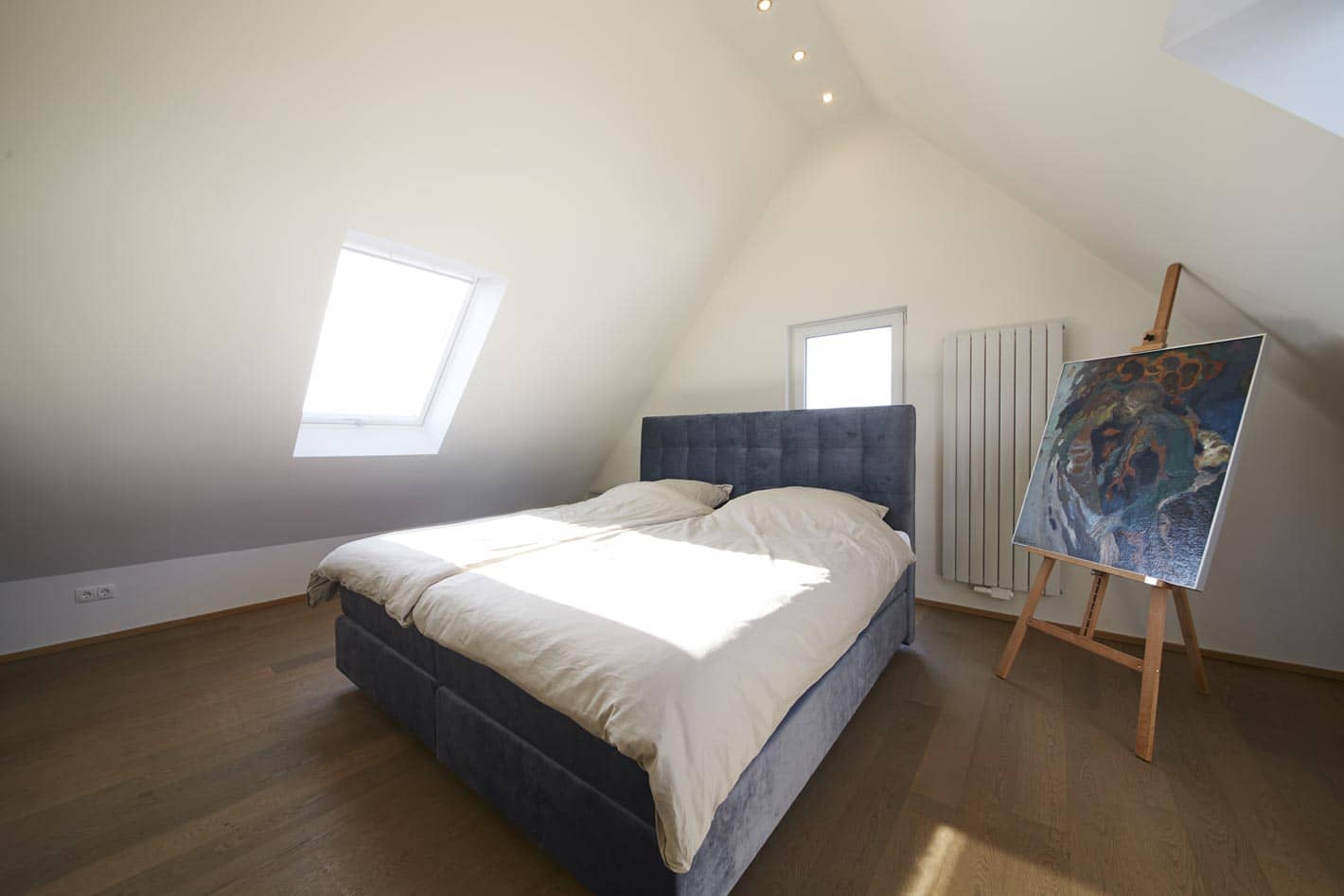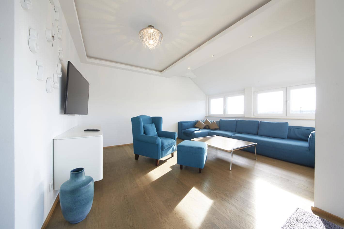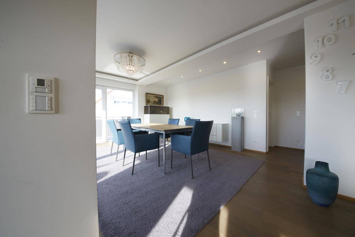 Sanierung und Ausbau einer 5-Zimmer-Maisonettwohnung mit 130 qm und der dazugehörigen Garage. Die drei Zimmer-Wohnung aus den 70er Jahren mit einem Panoramaausblick in das Stuttgarter Naturschutzgebiet Körsch wurde vollständig entkernt, um das zweite Dachgeschoss erweitert und zu einer 5-Zimmer-Maisonettwohnung ausgebaut.